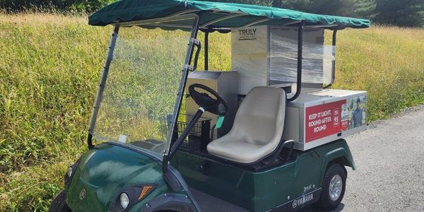 WE OFFER A LATE MODEL YAMAHA GOLF CART WITH BEVERAGE BOXES AS WELL AS STORAGE CONTAINER. THE CART ALSO COMES WITH A CASH BOX, HEADLIGHTS, HORN, AND FULL CANVAS TOP